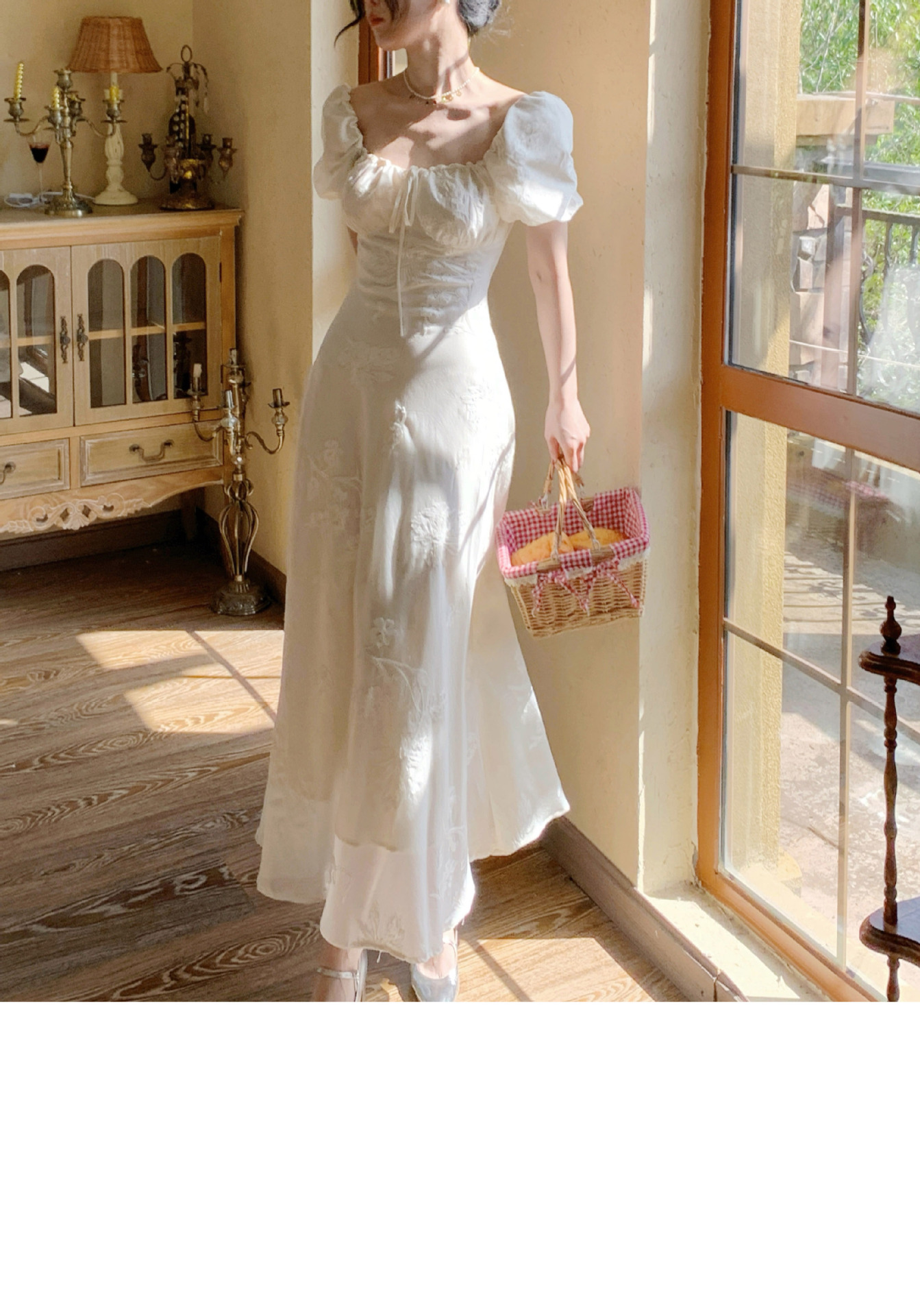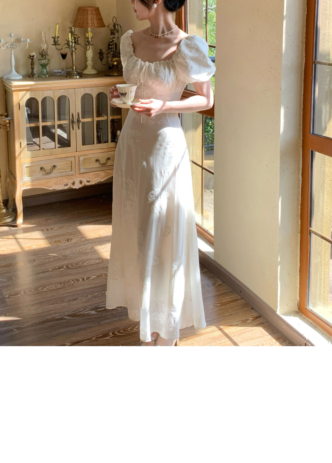 2024 Summer Thin Dyed Cloud Smoke French Vintage Gentle Long Dress Tencel Embroidered Shoulder Two-Wear dress for Children