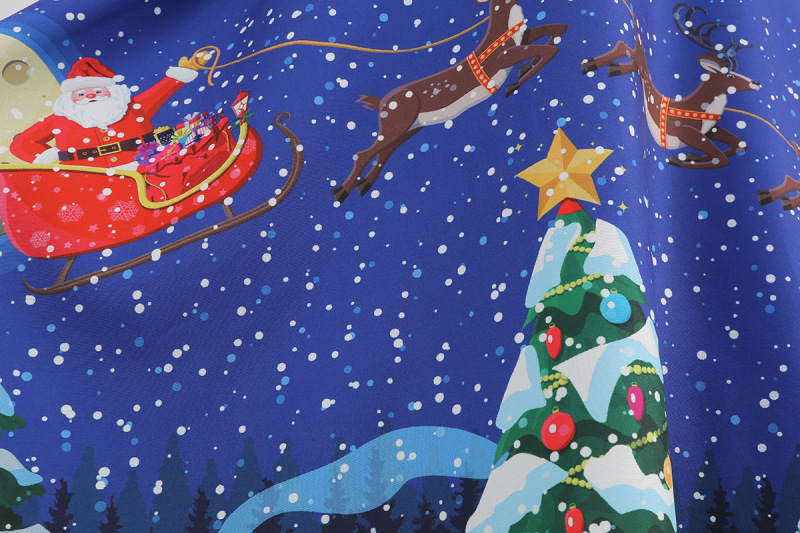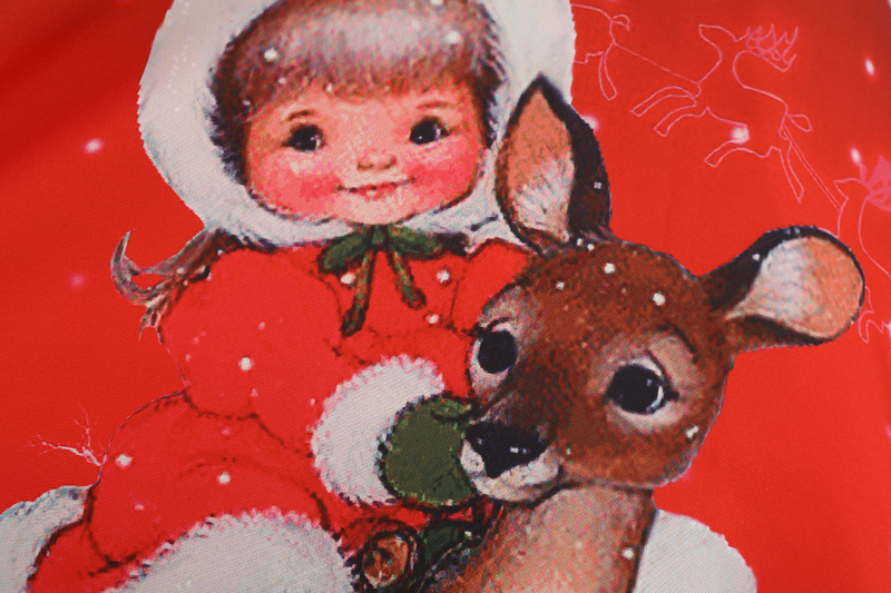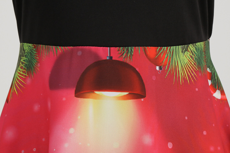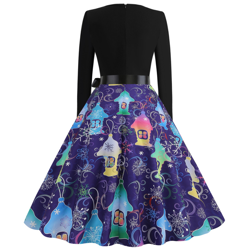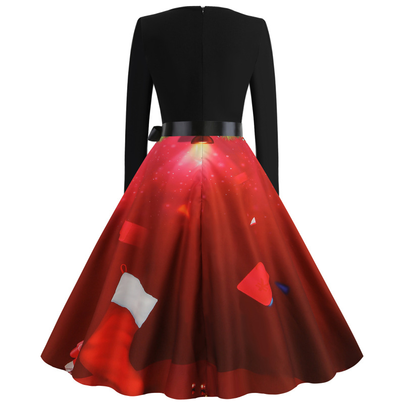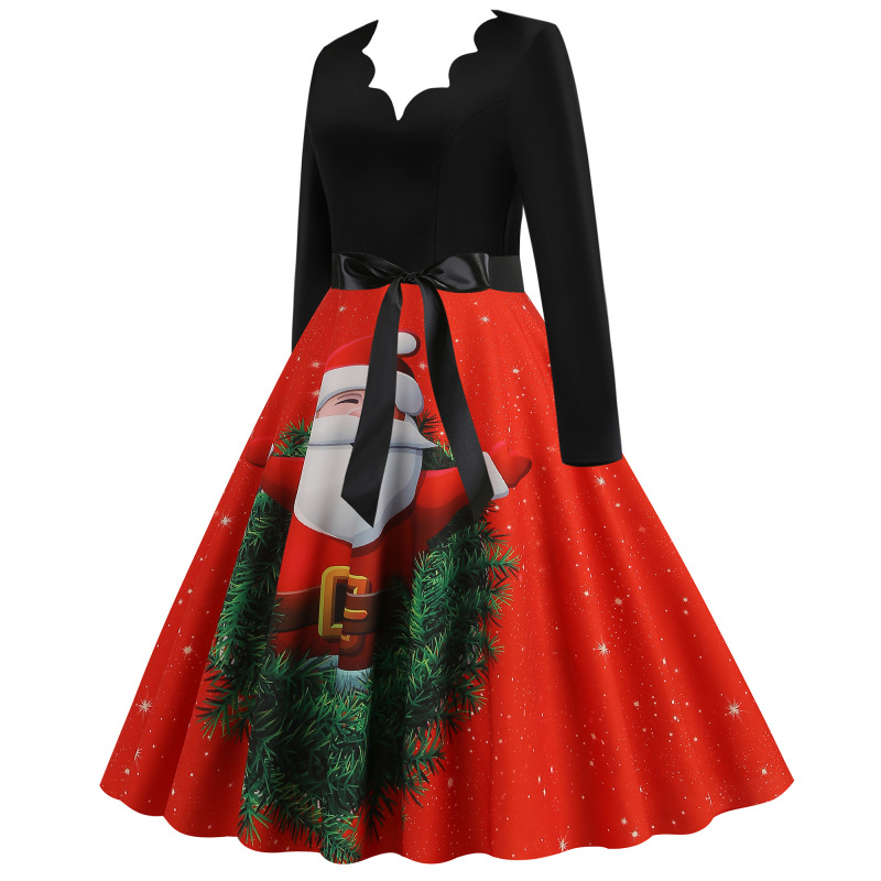 Cross-border Foreign Trade Women's Christmas New Arrival Burned Flower V-Neck Slim-fit Printed Long-sleeved Fashionable Dress Large-sleeved Dress